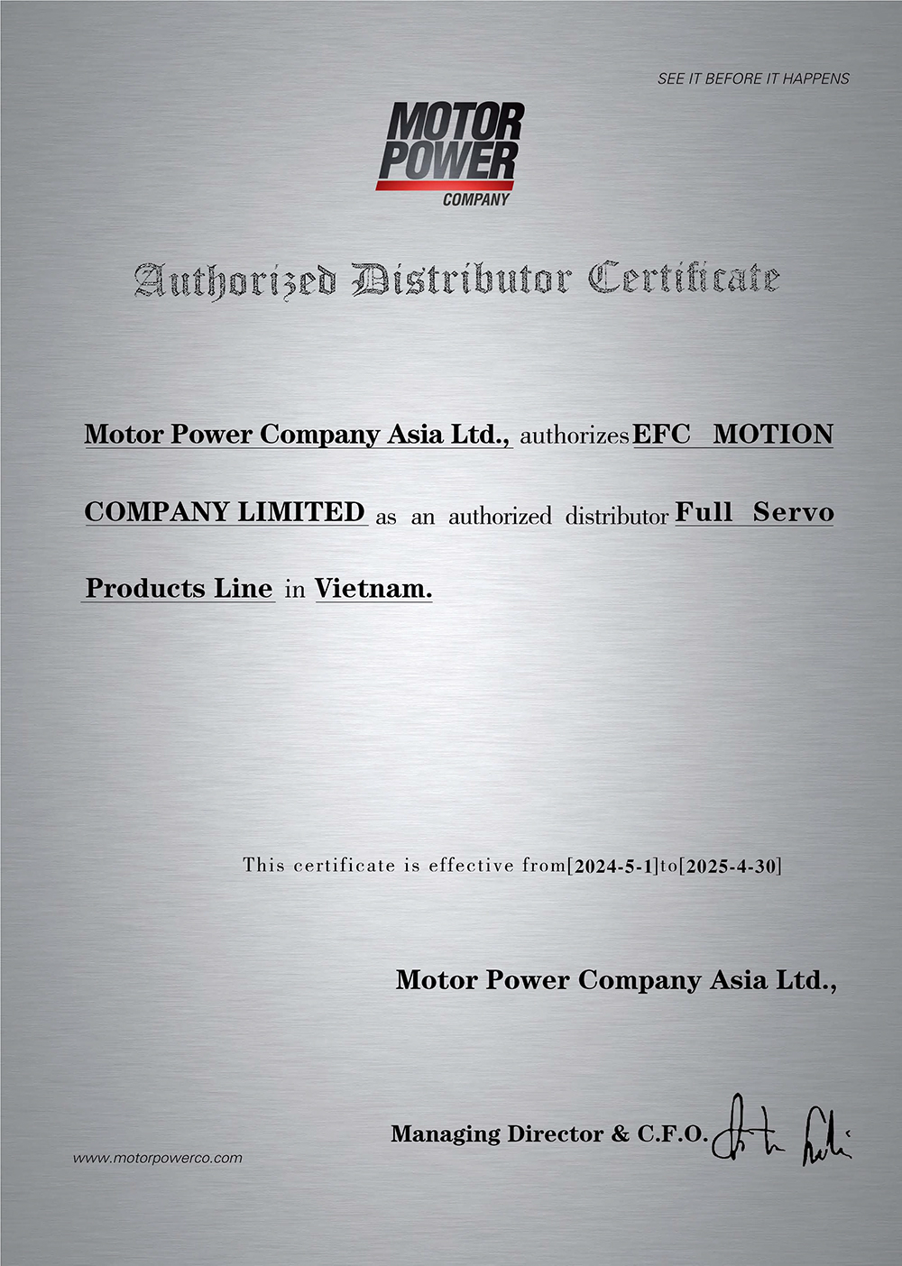 EFC Motion is the authorized distributor of Motor Power Company in Vietnam, providing local expertise to shorten project lead time and reduce integration risks. We support customers with application consultation, sizing and selection, system architecture guidance, commissioning support, and after-sales service—helping you move from concept to a stable running system efficiently.